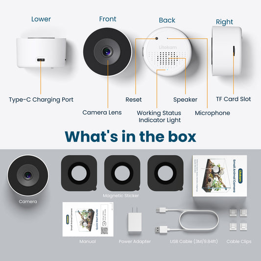 【3MP Close-up lens Ultra-HD Clarity – Day or Night】See every detail with litokam's 3MP Close-up lens Ultra-HD resolution and advanced color night vision. Whether it’s bright daylight or complete darkness, enjoy vibrant full-color footage around the clock.【Smart Detection Auto-Focus with Instant Alerts】Protect what matters most with real-time notifications. Litokam’s smart motion and pet detection sends alerts straight to your phone, helping you stay aware of any unexpected activity.【Hassle-Free Installation for Everyone】No tools. No stress. Litokam's innovative peel-and-stick design and Bluetooth pairing make installation effortless—even for those new to home security technology.·【24/7 Recording with Secure Storage Options】Record continuously with confidence. Store footage locally on a MicroSD card (up to 128GB), or upgrade to encrypted U.S.-based cloud storage to ensure your privacy is always protected.【App Control & Easy Sharing】Monitor your home anytime, anywhere. The littlelf smart app supports up to ten camera feeds and allows you to easily share access with family, making remote monitoring a breeze.